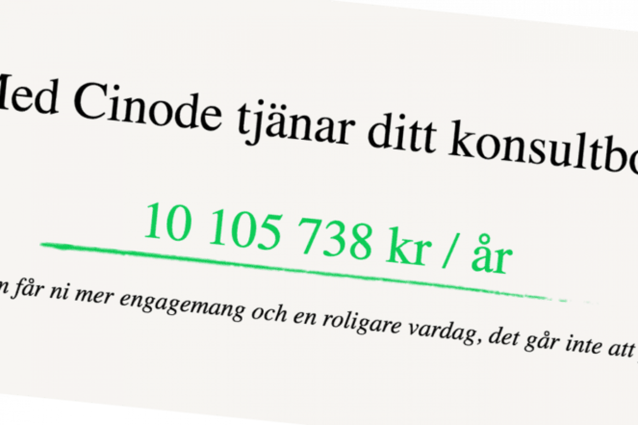 Konsultföretag som använder Cinode ökar både sina intäkter och minskar kostnaderna. I veckan släppte vi vår kalkylator där du enkelt kan se hur mycket mer ditt konsultföretag skulle kunna tjäna när ni optimerar era processer och arbetar smartare.