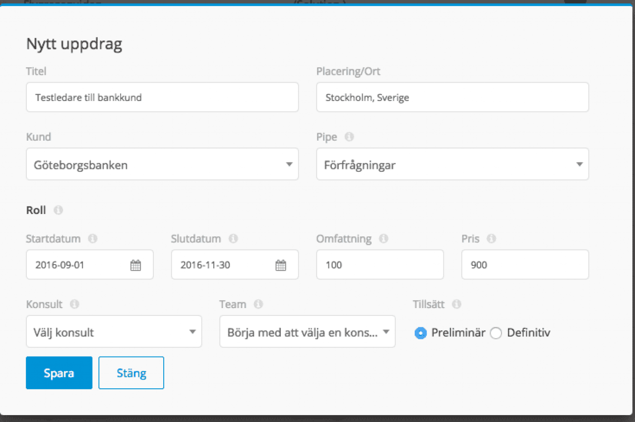 Beroende på er process kan medarbetaren själv preliminärboka konsulter som hen tycker borde passa utifrån kompetenskraven och tillgängligheten. Alternativt tar leveransansvariga över processen härifrån.