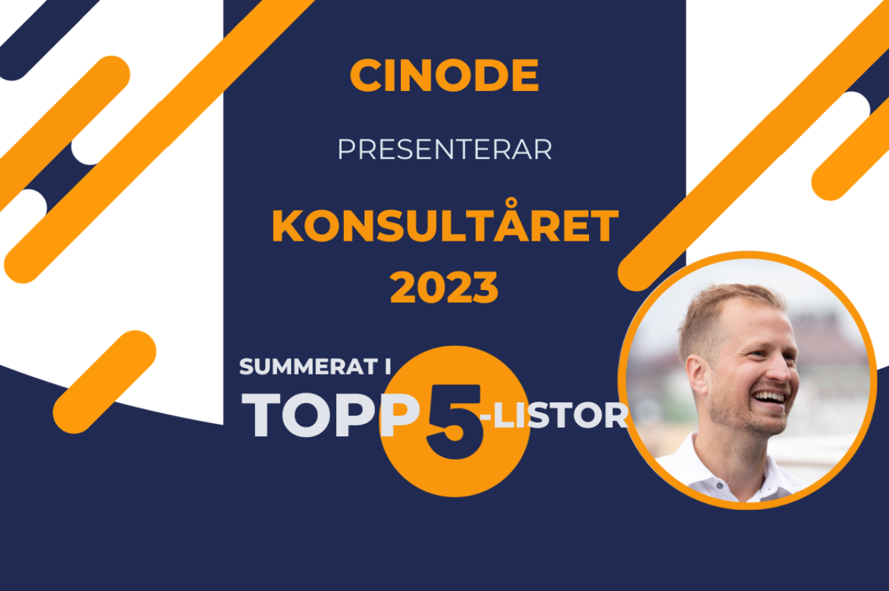 De svenska konsultföretagen har haft ett utmanande år men med stora skillnader beroende på bransch. Samtidigt har det som vanligt hänt många spännande saker. Blicka tillbaka på året som gått när Cinode sammanställer de viktigaste händelserna i 14 fullspäckade topplistor.