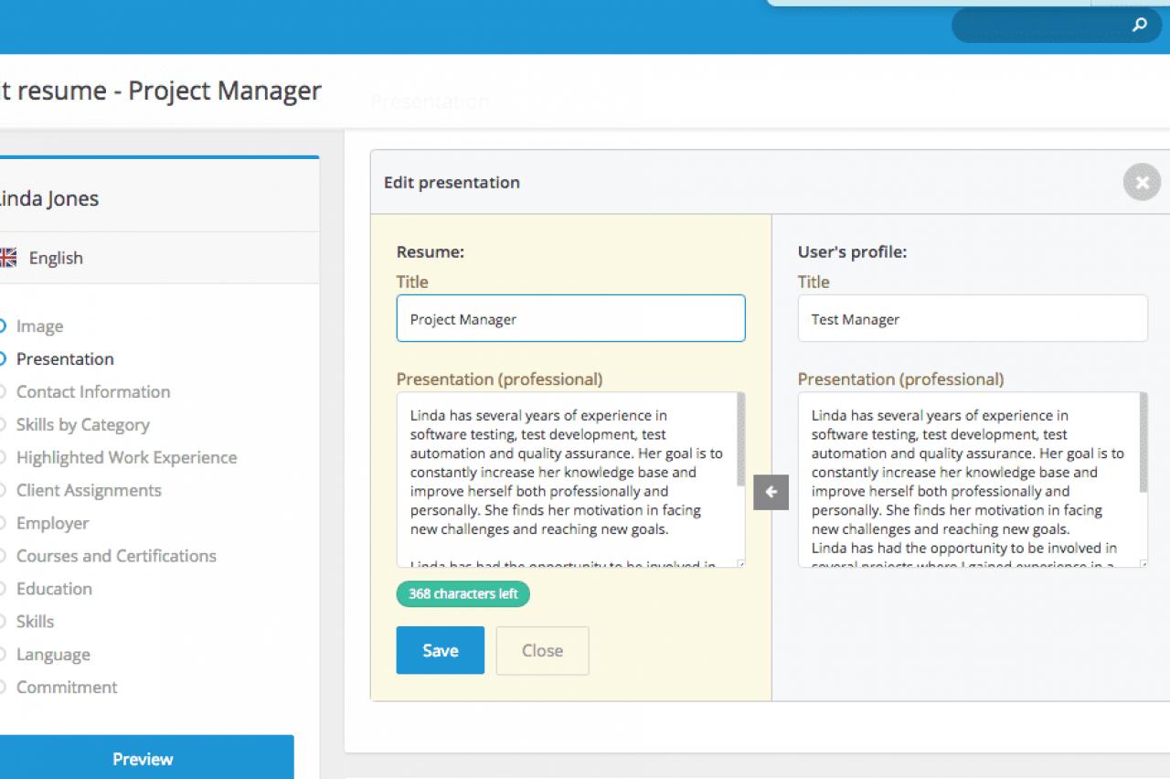 We have made it easier to compare the consultant’s basic information in Profile when you change the presentation in the consultant resume.