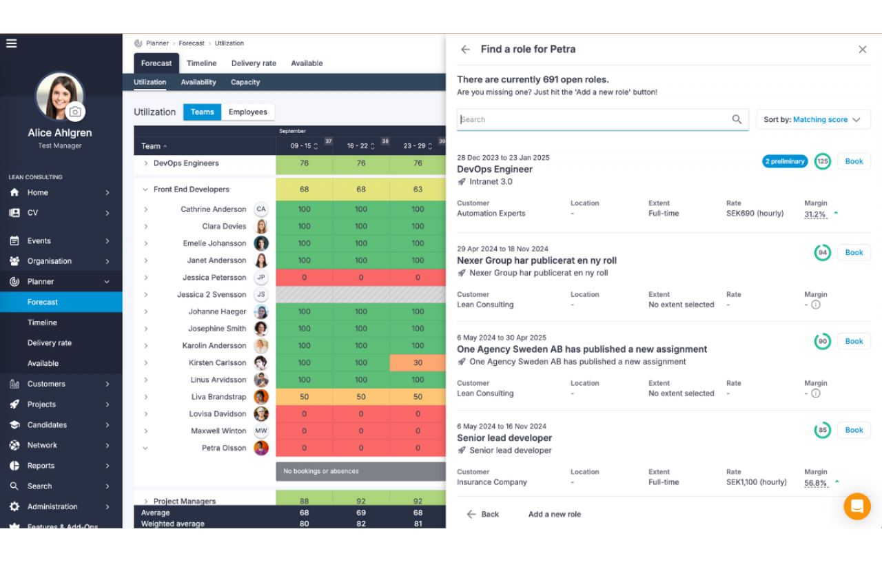 Cinode has long offered the market’s most advanced matching function to pair project roles with employees, subcontractors, partner consultants, and candidates. Now, we’re taking it a step further by simplifying the process of matching unassigned consultants directly in the utilization views with vacant project roles.