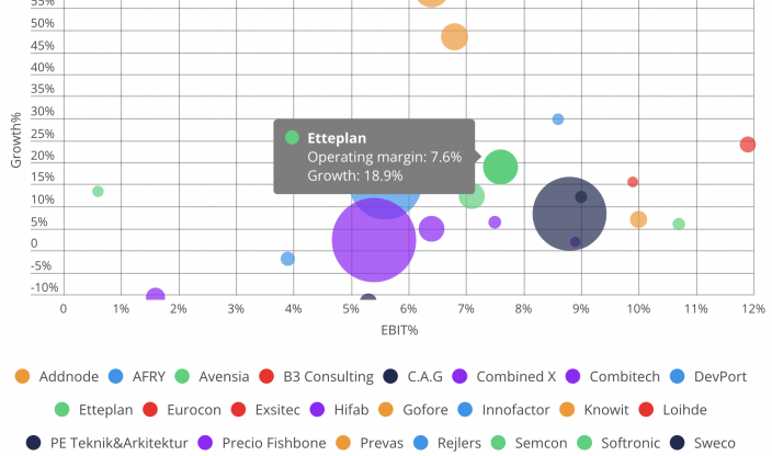 Ruotsin ja Suomen julkisesti noteerattujen konsultointiyritysten vahvan kasvun trendi jatkuu ensimmäisellä neljänneksellä. Kasvu kuitenkin hidastuu, ja korkean inflaation vuoksi se ei enää ole erityisen vahvaa. Kysyntä on yleisesti hyvää, mutta hyvin eriytynyttä. Tuloksellisesti olemme lähes samalla tasolla kuin viime vuonna. Tämä käy ilmi uudesta yhteenvedosta julkisesti noteerattujen konsultointiyritysten neljännesraporteista.