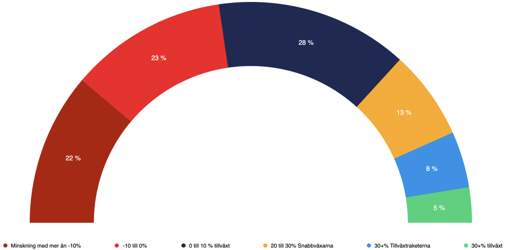 Samtidigt finns ett fåtal bolag som sticker ut som tydliga tillväxtvinnare – med exceptionell utveckling trots motvinden.