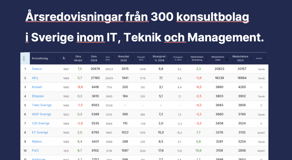 Ps: Du missade väl inte att vi släppte 📊 Konsultkollen 2025 förra veckan? I Konsultkollen kan du jämföra ditt bolag med 300+ konsultföretag i Sverige och ta del av topplistor, trender och insikter i årets största genomlysning av konsultbranschen.